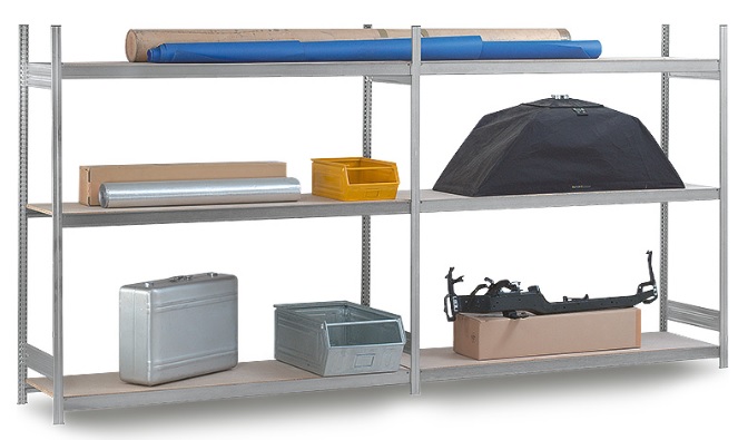 Regały o dużej rozpiętości – półki z wypełnieniem z płyty wiórowej: