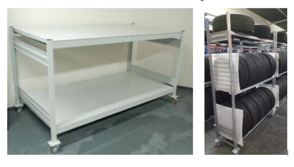 Często zwykłe regały półkowe stacjonarne to dla naszych potrzeb za mało. Wymagania naszych Klientów zwiększają się wraz we wzrastającymi potrzebami w przedsiębiorstwie. Kwestia mobilności regału nie jest dla nas problemem. Jeżeli regał ma służyć jako mobilny wózek transportowy do zadań specjalnych w warsztacie samochodowym czy na produkcji, to przy odpowiednim jego ustabilizowaniu, będzie w 100% spełniał swoje zadanie. Regał półkowy mobilny może z powodzeniem służyć do transportu drobnych narzędzi, kluczy, opon, komponentów do produkcji, dokumentów itp.