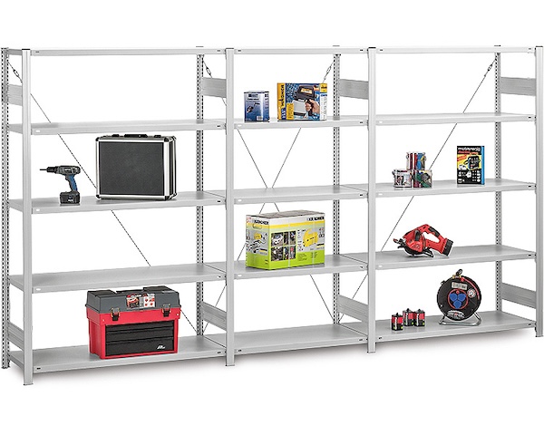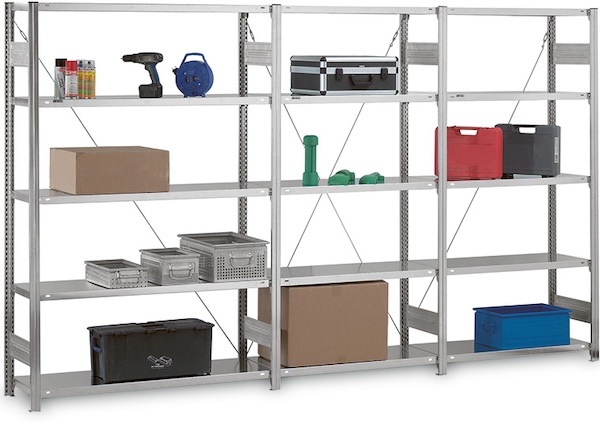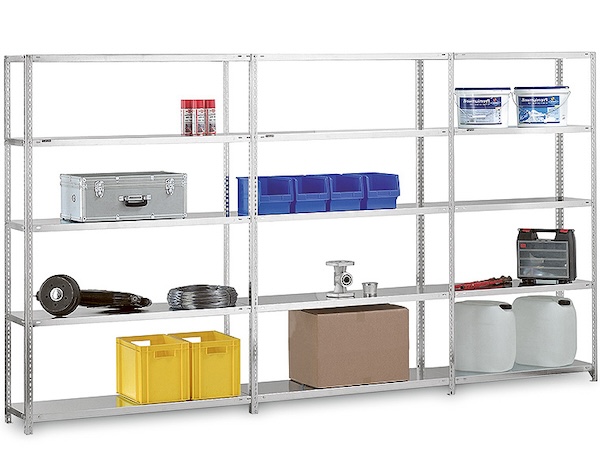 Regał półkowy stabilizowany tylnymi odciągami nadaje się do montażu przy ścianie (obsługa regału odbywa się z jednej strony). Jeżeli szukasz regału, do którego dostęp jest z obydwu stron, wybierz regał obustronny, którego stabilizację stanowią trawersy mocowane pod niektórymi z półek. Obydwa regały można rozbudować o wielopoziomowe systemy regałowe.