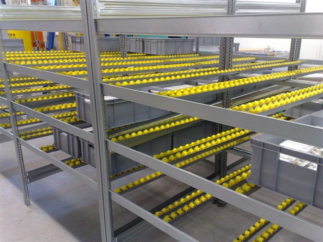Regały rolkowe do składowania towarów w pojemnikach zostały zbudowane zbudowane w oparciu o konstrukcję regałów paletowych. System regałów rolkowych przepływowych to lekka wersja regałów paletowych przepływowych dedykowana do obsługi ręcznej.