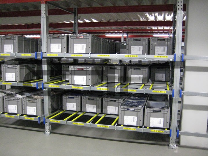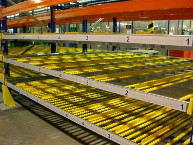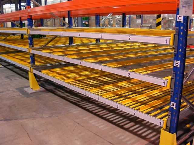 System regałów rolkowych to lekka wersja regałów paletowych przepływowych dedykowana do obsługi ręcznej. Opera się na metodzie magazynowej FIFO „pierwsze weszło – pierwsze wyszło”. Regały rolkowe (znane również jako regały przepływowe) mają zastosowanie w wielu działach produkcji, a zwłaszcza w działach kompletacji towaru. Regały rolkowe służą do transportowania pojemników z towarem. Stacja załadowcza znajduje się najwyżej, a stacja rozładowcza najniżej. Płaszcze rolkowe stanowią drogę ze spadkiem ok. 3-4 procentowym, którą przebywają pojemniki. Pod wpływem grawitacji zsuwają się one do stacji wyładowczej. Ogranicznik znajdujący się przy stacji wyładowczej jest gwarantem tego, że pojemnik zatrzyma się na końcu swej drogi.