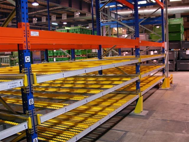 Regały rolkowe mogą być budowane w oparciu o kontrukcję regałów półkowych KLIPS jak i regałów paletowych. W regałach paletowych dolne półki wyposażone w rolki obsługiwane są przez personel, natomiast wyższe poziomy trawersów służą do składowania towaru na paletach.